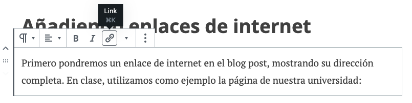 Primero pondremos un enlace de internet en el blog post, mostrando su dirección completa.