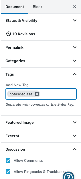 Una etiqueta o “tag” es una palabra que se utiliza para organizar un post en el blog. Esto facilita mi búsqueda de información en el futuro. Los tags deben ser palabras relacionadas al tema o contenido del blog post.