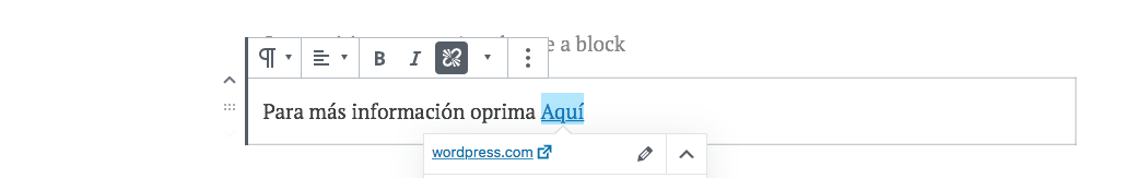 - Escriba por ejemplo, “Para más información oprima Aquí”