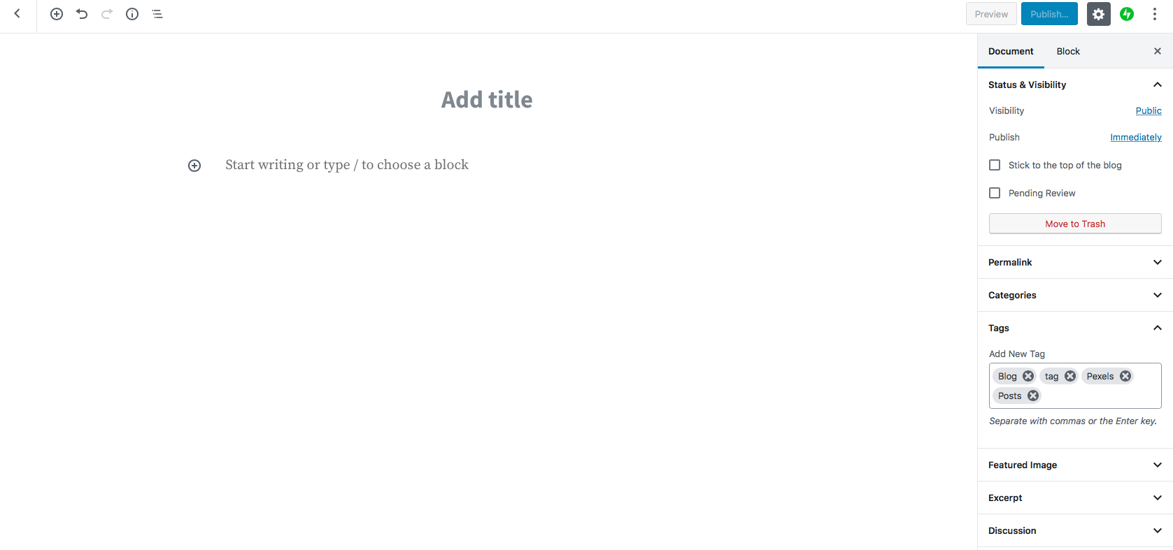 - En la parte derecha del blog va a aparecer dos secciones: Document/Block. Presionas Document.
