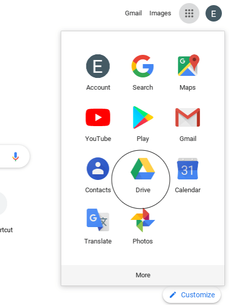 Después de todo esto haber sido explicado, vamos a comenzar el tema con la herramienta de “Google Drive”. Para acceder este, deben ir a la página general de Google, buscar las 9 bolitas agrupadas en la parte arriba a la derecha, y ahi le van a dar “click” y van a buscar el icono que dice “Drive”.