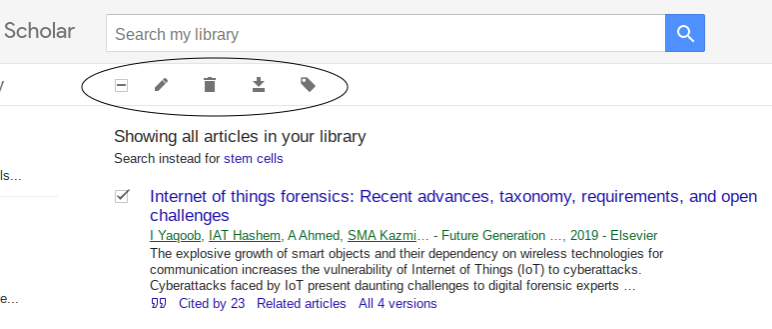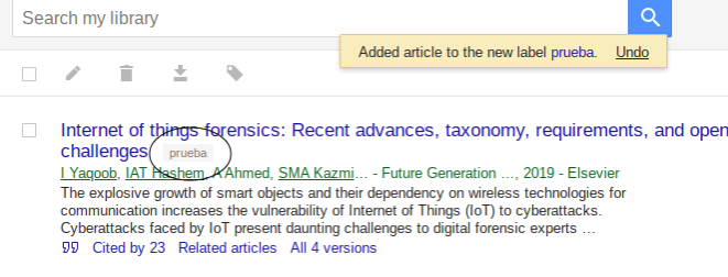 Si quieres ver los artículos guardados, simplemente tienes que darle “click” a “my library y van a aparecer todos. si los quieres editar, borrar, exportar o “tag”, le tienes que dar “click” al cuadrito al lado de los artículos y en la parte de arriba de estos, aparecerán las opciones. Con los “tags” tú puedes clasificar más exclusivamente los artículos. si le das “click”, va asalir la opción de crear un nuevo tag o manejar los tags que ya tienes. Si le añades uno nuevo, este aparecerá al lado del titulo del articulo. Ahora todo lo que busques bajo ese “tag”, te apareceran los articulos con ese “tag”.