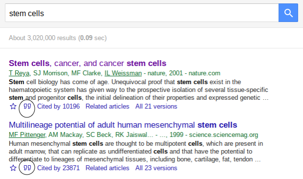 Si quieren las fichas bibliográficas del artículo, le pueden dar “click” a las comillas y va a aparecer una ventana con estas en múltiples formatos. Desde ahí, le puedes dar copy y utilizarlas a su gusto. Justamente al lado de esas comillas, dice “cited by” y tiene una cantidad de números. esos números representa cuantas personas o artículos han utilizado ese articulo de alguna forma.