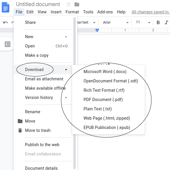 En Google Docs también puedes, cambiarle el nombre al documento, moverlo entre folders, moverlo a la basura y publicar en la web. Todo esto se accede a través de “file”.