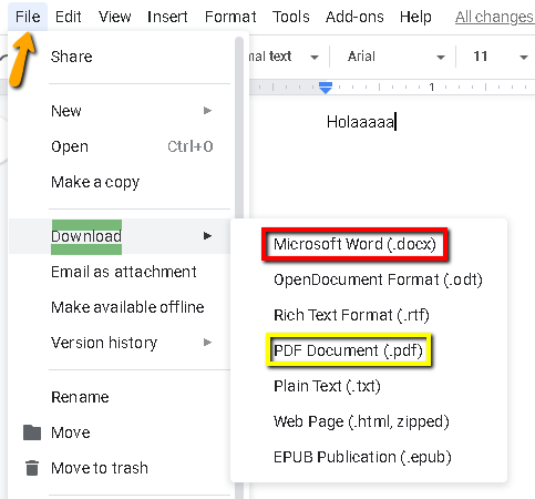 Continuamos con conocer una serie de opciones que tenemos con los documentos de google drive. A continuación verán que además de guardar el documento en google drive tienen la opción de guardarlo como documento de Word, PDF o entre otros.