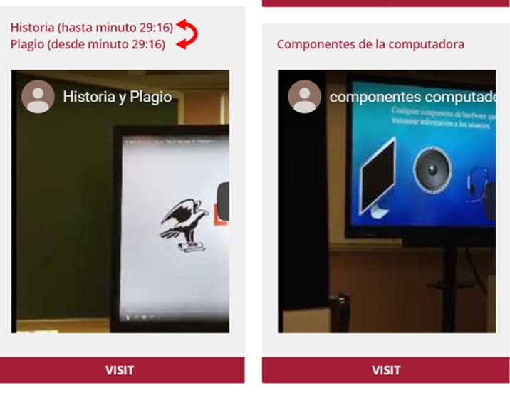 En esta página se encuentra las secciones Handouts, Bookmarks, y Videos Clases Virtuales. En el área de Videos Clases Virtuales se encuentra el video titulado, Historia y Plagio. La profesora dio de asignación ver la parte que habla sobre el plagio. Luego veremos la Historia juntos en la clase.