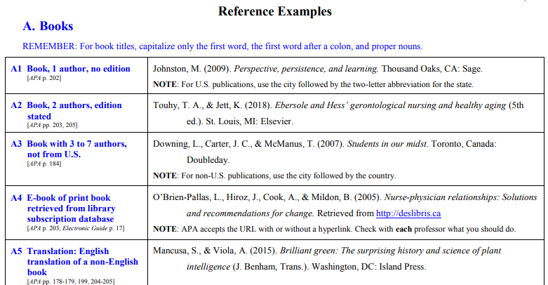 Las referencias se pueden encontrar de diferentes maneras, la común es el estilo APA (American Psicological Association). El formato APA es muy común en las universidades, cada cierto tiempo esta organización actualiza su contenido. En la actualidad el manual de este formato va por la sexta edición. A continuación podremos observar un ejemplo sobre como se ve el formato APA.