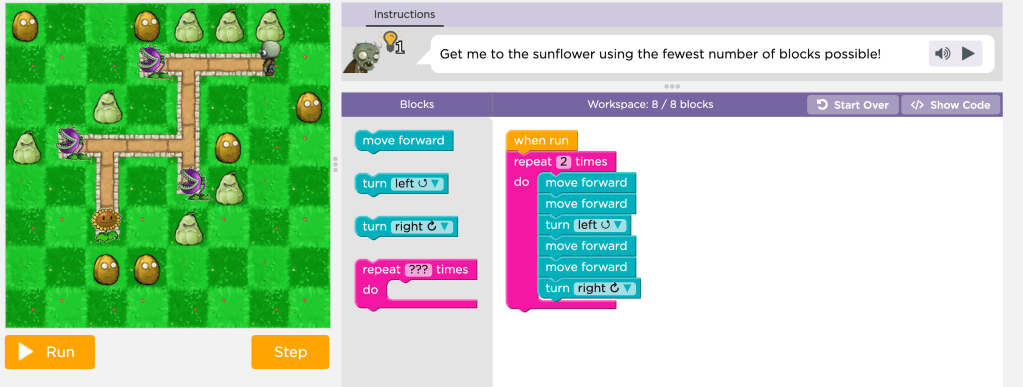 En la clase del 17 de noviembre de 2019, la profesora hablo sobre como debe ser las entrevistas, la cantidad de veces que podemos asistir a cada entrevista y el tiempo que se debe de presentar en la hora y media y cada grupo tendrá solo 15 minutos. Las instrucciones de la entrevista se encuentran en el blog de la clase. A continuación la profesora estará añadiendo unas preguntas de reflexión sobre la entrevista. Además de eso la profesora repaso y discutió los ejercicios de code. Discutimos parte del ejercicio 7, 10 y 11 con los juegos del zombie, abeja y las formas de u, la escalera. También aprendimos que no nos debemos pasar de los move y para que no pase eso utilizaríamos los repeat, que es para ahorrar pasos y cuando hay patrones. Luego la profesora contesto preguntas sobre la dificultad que se les presento en algunos ejercicios de code. Las instrucciones de la tarea de code “ express” 2019” ya están disponible en el blog. La tarea se divide en dos partes, la primera parte se entrega el 1 de diciembre y la segunda parte el 6 de diciembre. Por cada ejercicio solo será un punto que suma a 142 bolitas.